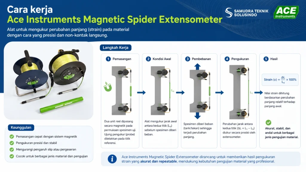 Cara Kerja Ace Instruments Magnetic Spider Extensometer