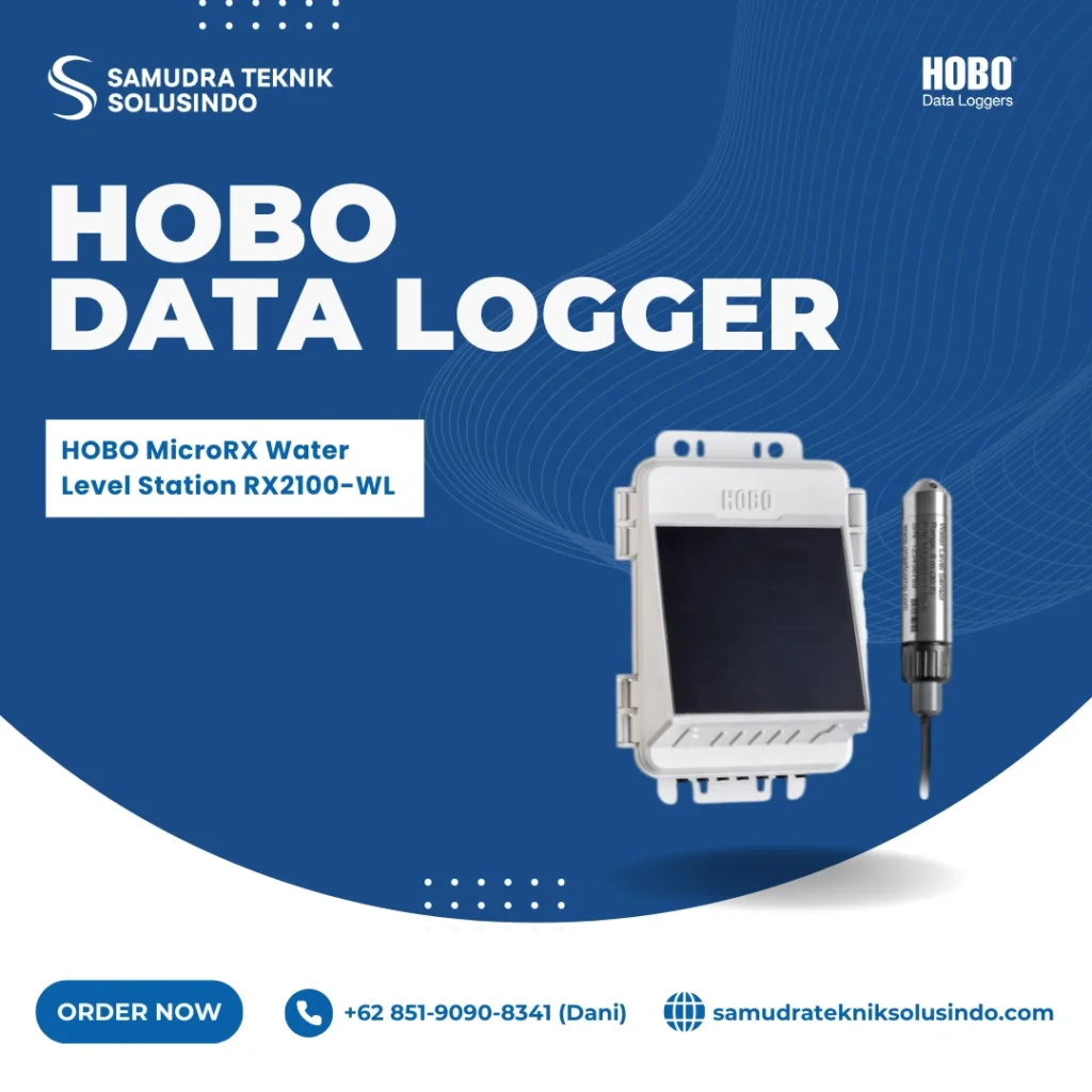 Untuk kebutuhan pemantauan air yang praktis dan akurat, salah satu alat yang direkomendasikan adalah HOBO MicroRX Water Level Station RX2100-WL. Alat ini sudah dilengkapi dengan sensor canggih, perekam data, dan sistem pengiriman data otomatis.