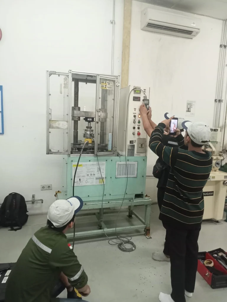 Penggantian komponen alat melibatkan proses penggantian loadcell dengan merek Swoha yang memiliki kapasitas 50 kN. Loadcell ini akan diganti untuk memastikan bahwa peralatan tetap berfungsi dengan optimal dan memberikan hasil pengukuran yang akurat.
