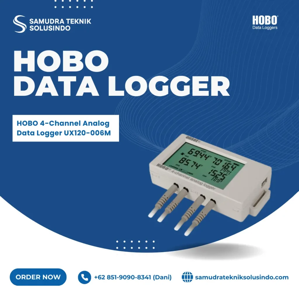 HOBO UX120-006M adalah data logger dengan empat kanal yang dapat dihubungkan ke berbagai jenis sensor eksternal, seperti sensor suhu, sensor CO₂, sensor kecepatan udara, sensor ketinggian air, atau sensor arus listrik. Sangat cocok untuk pemantauan lengkap di area peternakan.