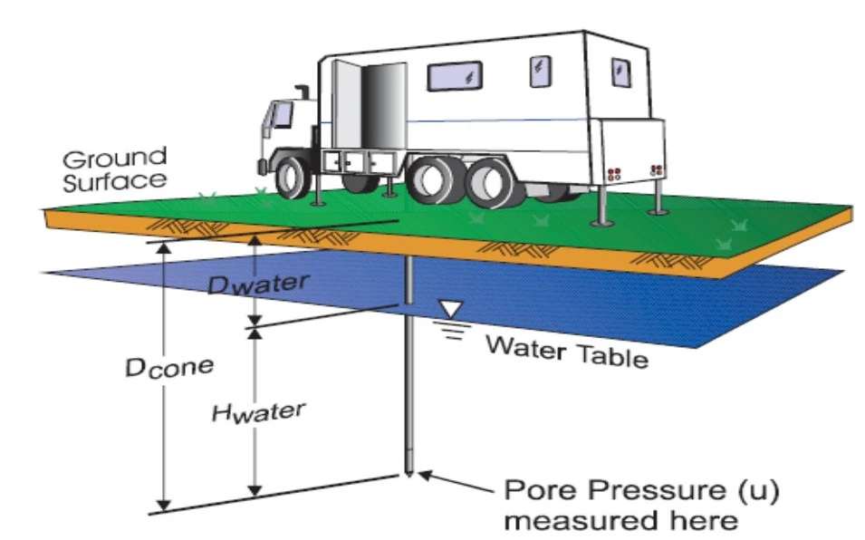 Alat CPTU terdiri dari konus berbentuk kerucut, sleeve geser, dan piezometer. Saat alat ini didorong secara vertikal ke dalam tanah menggunakan mesin hidrolik, data mengenai kekuatan tanah di ujung alat (tahanan ujung), gaya gesek di sisi alat (tahanan selubung), dan tekanan air dalam tanah dapat diperoleh secara bersamaan dan terus-menerus. Metode ini tidak hanya memberikan informasi yang jelas tentang sifat tanah, tetapi juga membantu dalam memahami susunan lapisan tanah.