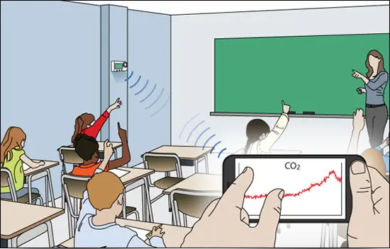 • Kantor, sekolah, fasilitas kesehatan, pusat kebugaran, dan rumah sering kali melebihi kadar CO2 yang sehat.