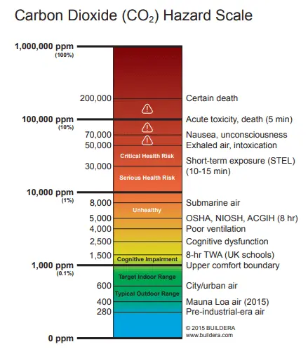 • Konsentrasi CO2 dalam ruangan di atas 1.000 ppm menyebabkan gangguan kognitif dan disfungsi.